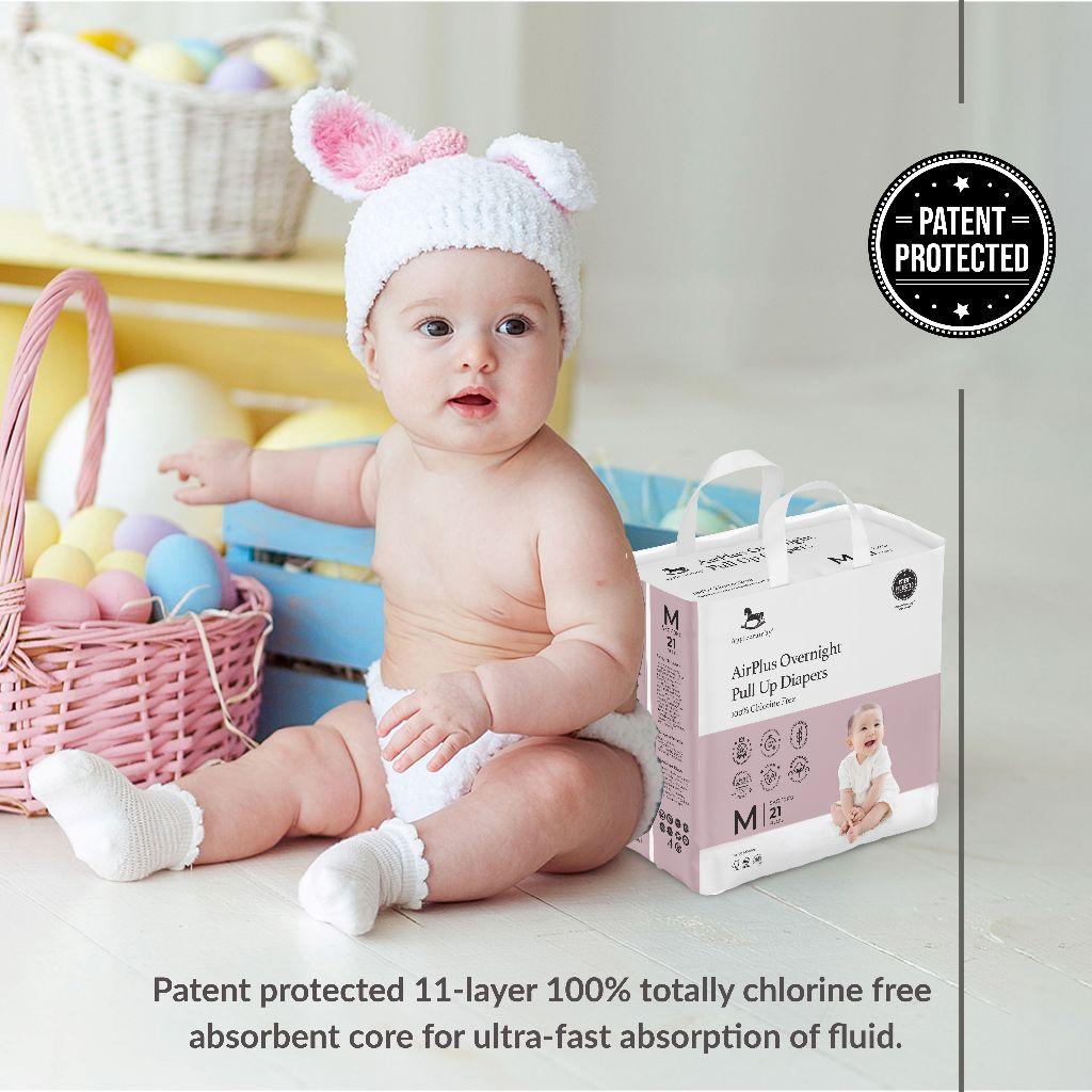 Applecrumby diapers are Patent Protected 100% CHLORINE FREE, making it friendly to your baby’s bottom and the environment!