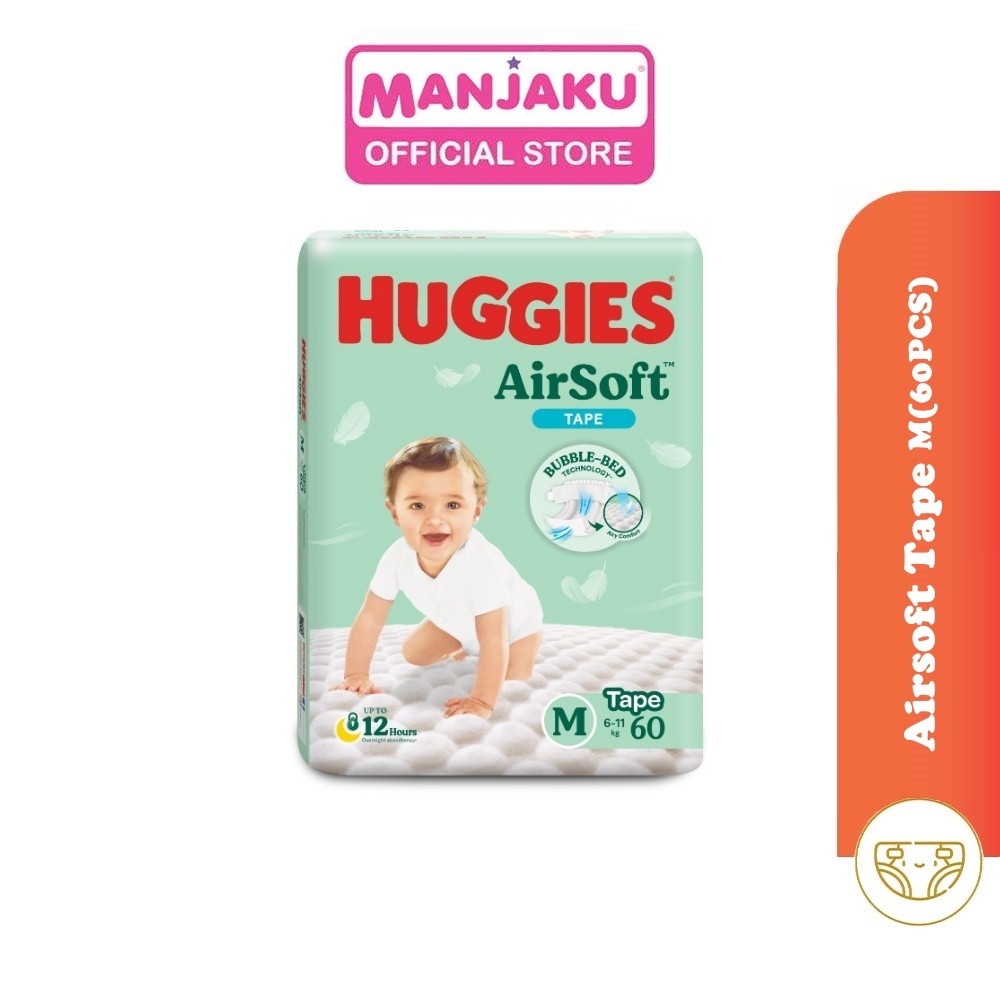 Introducing Next Generation HUGGIES® AirSoft™ for New Born (NB and S sizes) with Patented Bubble-Bed Technology™. Specially designed with 500 3D Air Bubbles - gently cocoons baby's skin and pulls pee and runny poo quickly away from baby's delicate skin, keeping it fresh and dry.